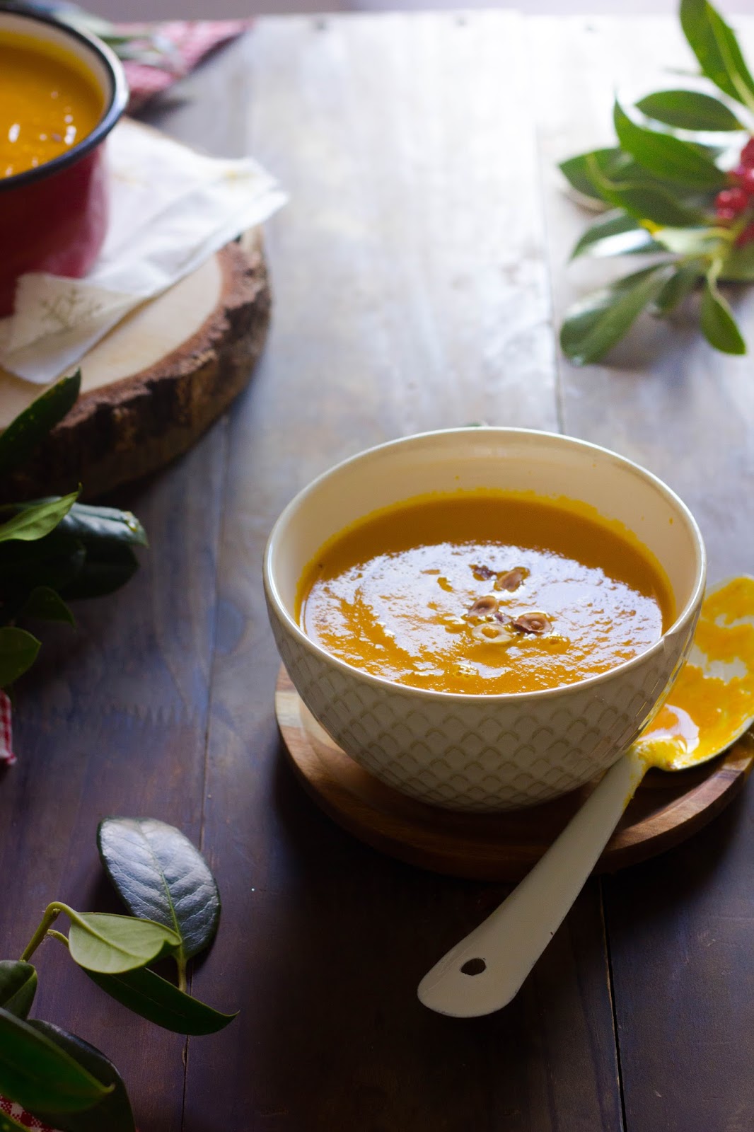 Velouté de potimarron, orange et coco.